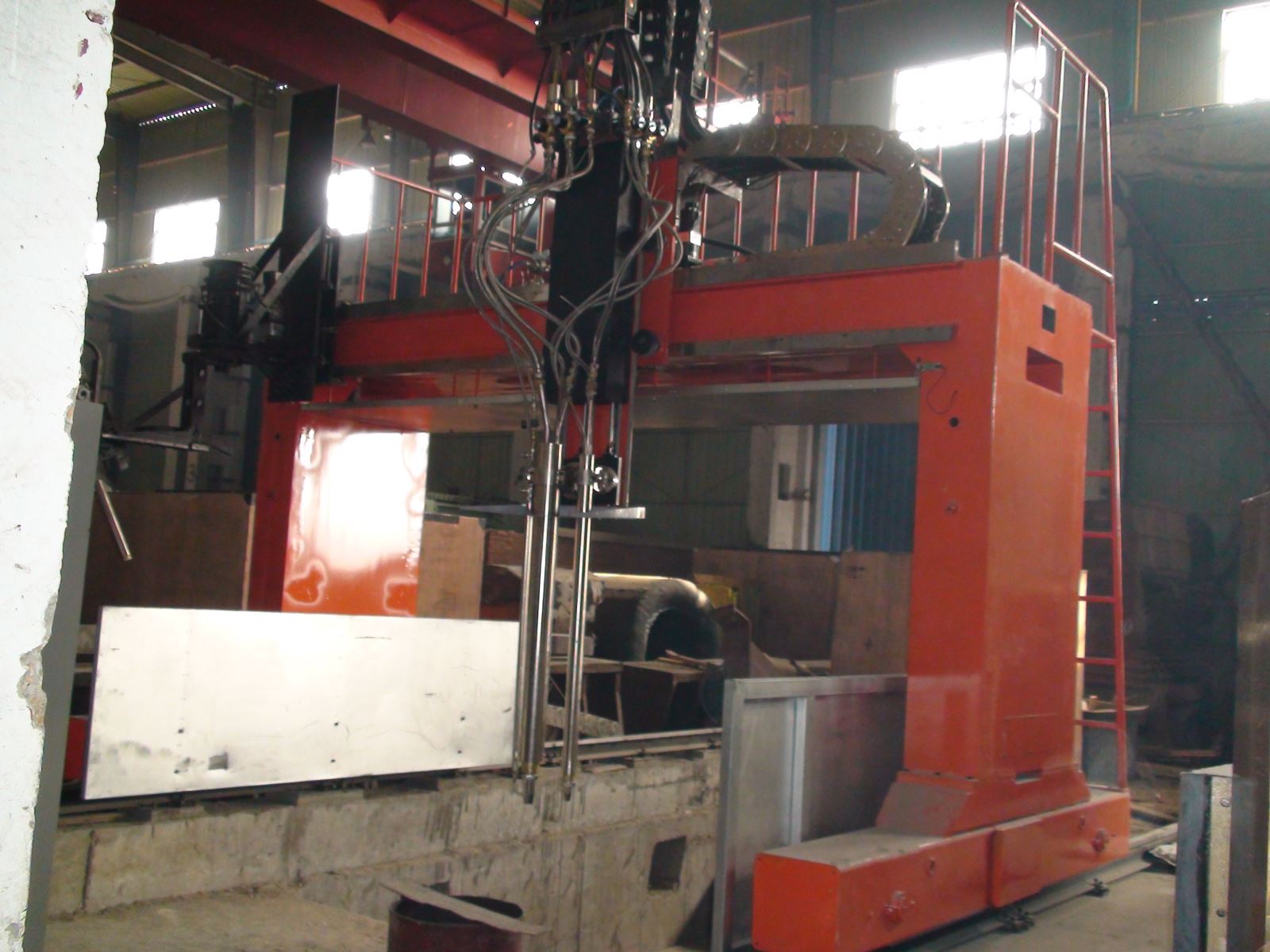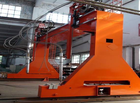 ● 龍門所配二臺焊機(jī)、保護(hù)氣氣瓶(至少2個)、控制柜等均放在龍門兩側(cè)托架上,隨龍門一起移動,進(jìn)龍門的外部供電線纜采用滑線供給,使得龍門移動范圍加大。