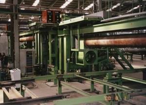 ● 1套預(yù)焊:預(yù)焊是在鋼管成型之后,采用粗絲高速氣體保護(hù)焊(MAG)方法進(jìn)行連續(xù)定位焊。焊速:3~6m/min。